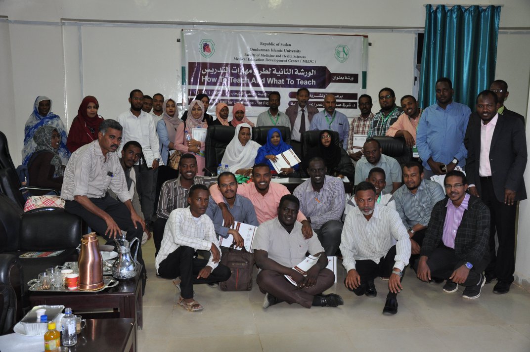 أقام مركز تطوير التعليم الطبي بكلية الطب جامعة أم درمان الاسلاميه اليوم الأحد 11 سبتمبر 2022م بقاعة ب.بادي للمؤتمرات بالكلية؛ ورشة طرق ومهارات التدريس تحت عنوان (How to teach and what to teach) وهي تستهدف الأساتذه الجدد بالكلية، بدأت الورشه بالترحيب من السيد عميد الكلية د. عاطف أحمد سعد والذي تحدث عن تطور الكليه والجامعة والمجهودات التي بذلت في الاعتماد والذي أصبح قاب قوسين.