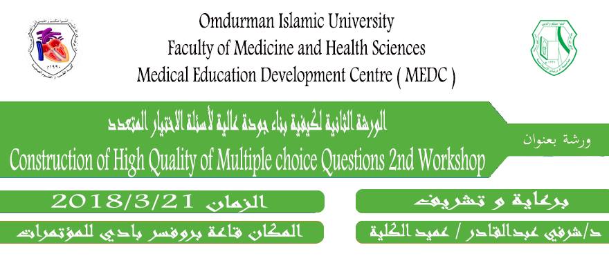 نظمت كلية العلوم والتقانة بالتعاون مع عمادة البحث العلمى ومركز تطوير التعليم الطبى بكلية الطب والعلوم الصحية MEDC
